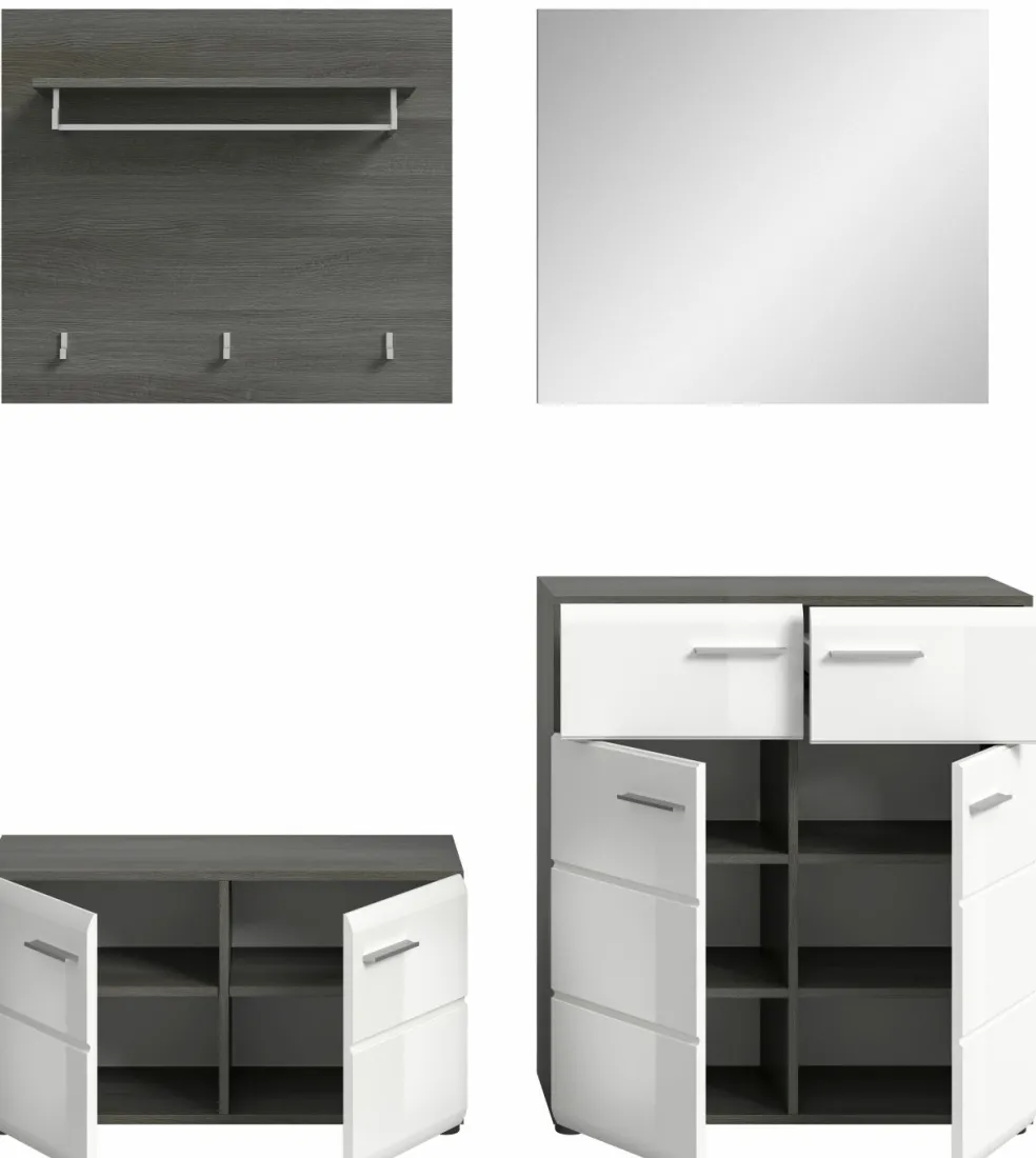 1 meuble à chaussures avec 2 tiroirs, 2 portes et 4 tablettes amovibles
