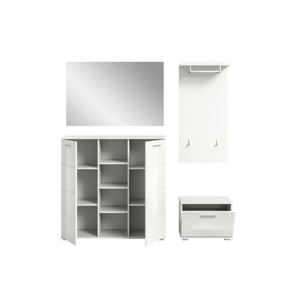 1 meuble à chaussures avec 4 casiers ouverts, 2 portes et 4 tablettes amovibles