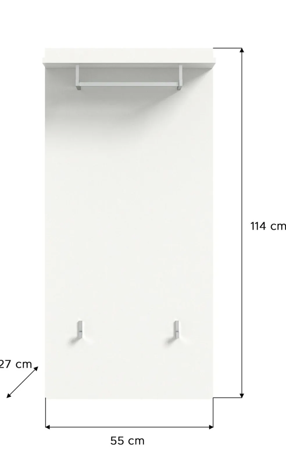 1 panneau portemanteau avec 1 tablette porte-chapeaux, 1 barre de penderie et 2 crochets