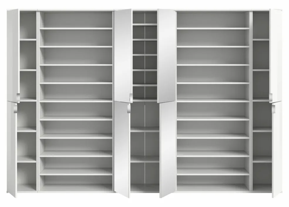 2 étagères à chaussures avec 8 tablettes amovibles et 1 tablette fixe chacune