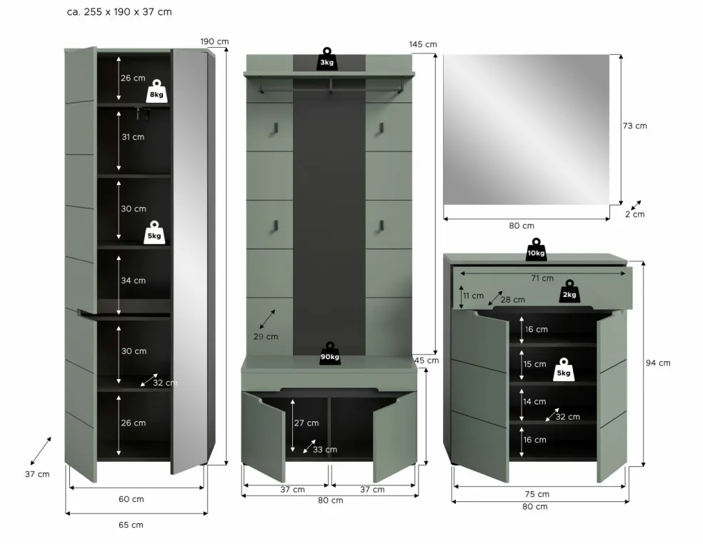 | Armoire d’entrée | 65 | 190 | 37 |