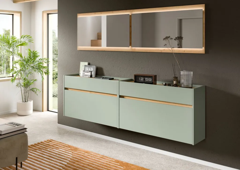 2 meubles à chaussures avec, chacun, 1 tiroir, 1 abattant et 1 rangement pour chaussures, à suspendre