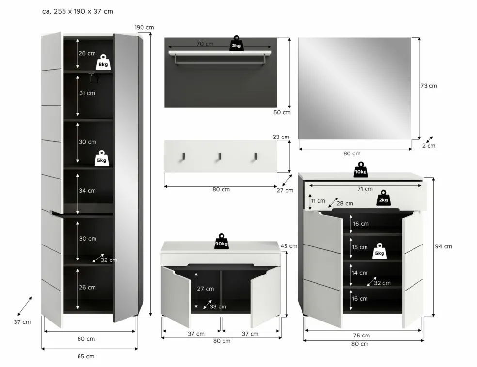 | Armoire d’entrée | 65 | 190 | 37 |