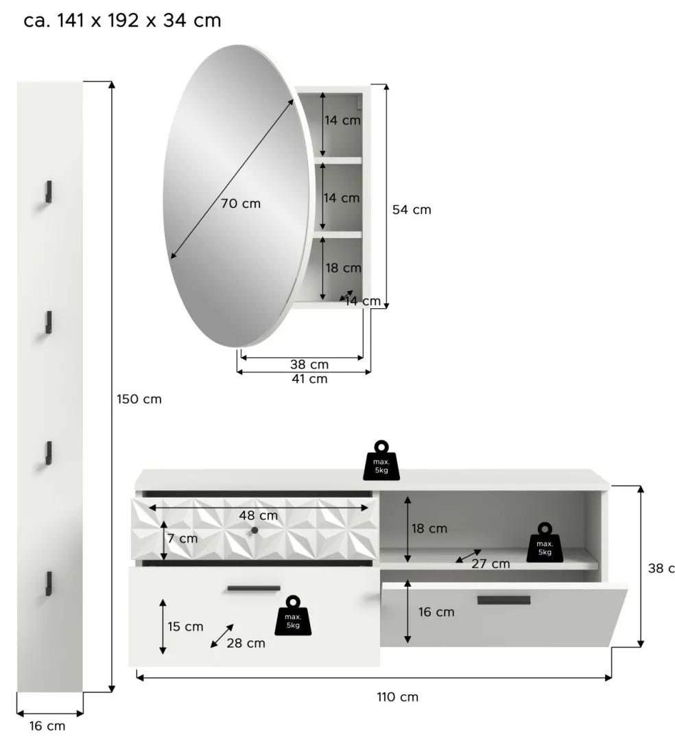 | Dimensions : | L/H/P env. 141/192/34 cm | ||