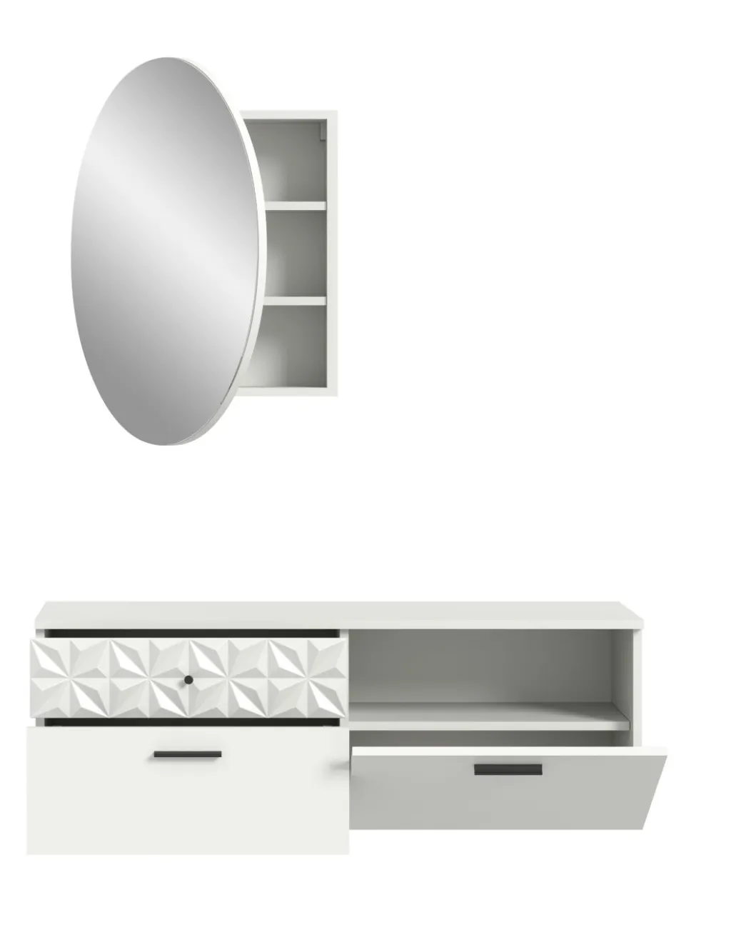 1 miroir avec 1 porte et 1 tablette amovible