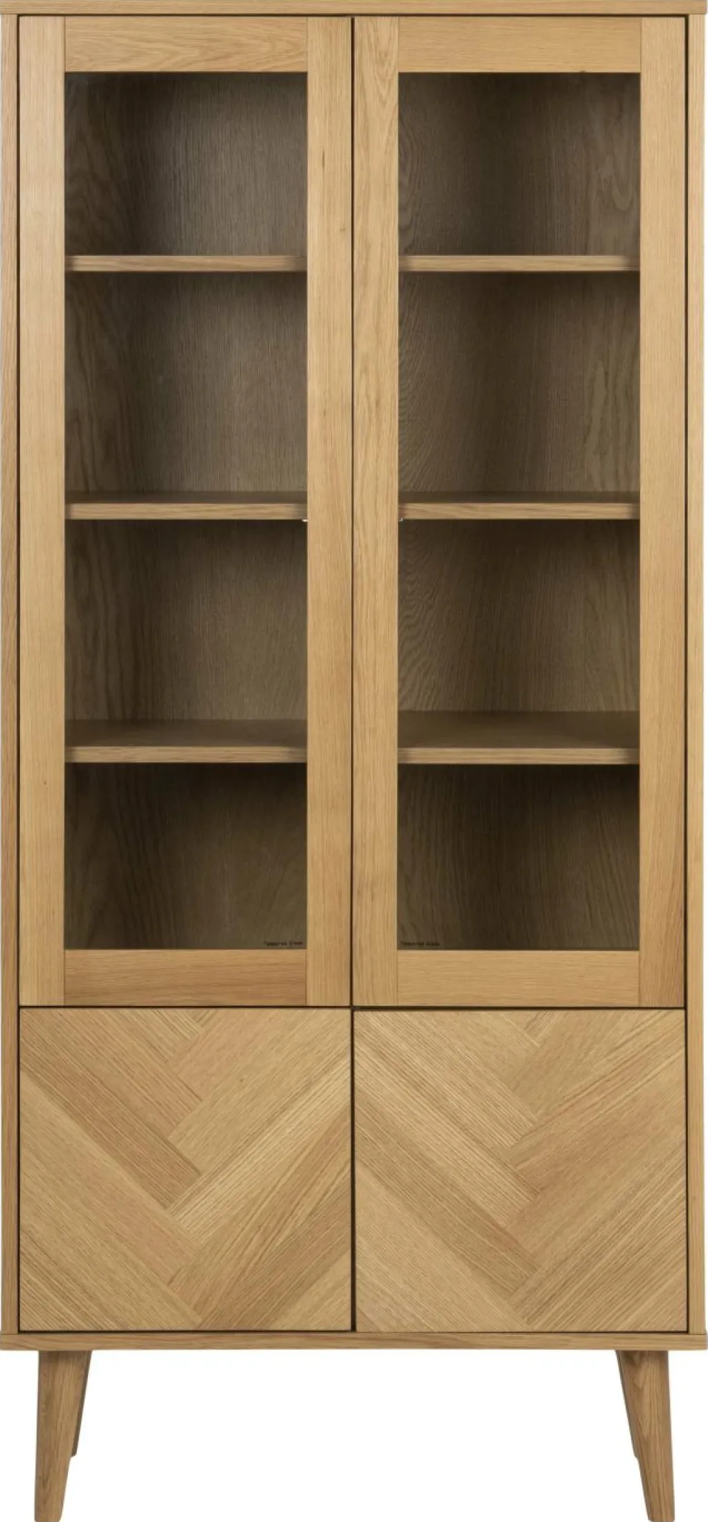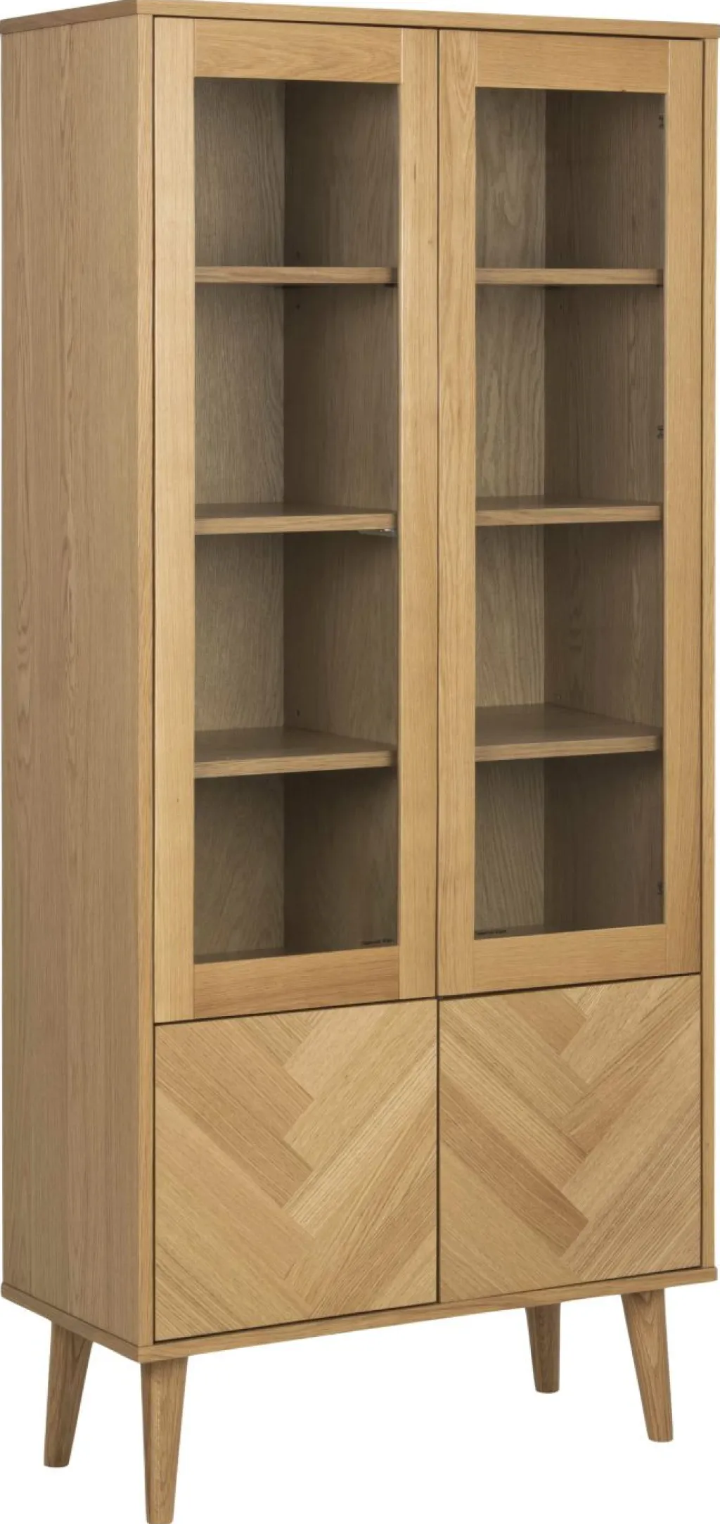 Caisson et façade : placage chêne (Chine), laqué / verre